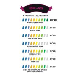 Highest friction pad available with aggressive initial response and smooth friction increase as rotor temperatures rise